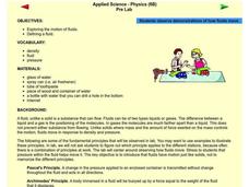 Students observe fluid motion. In this Physics lesson, students explore the principles of Pascal, Archimedes, and Bernoulli. Students list their experiences with fluid movement.