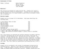 Students understand the meaning of volume. In this displacement of liquid lesson, students experiment with various weights and a balance scale to find the liquid displaced.