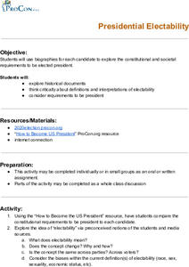 book reports, book reviews, compare and contrast, compare and contrast essays, connotation, critical thinking, debate, elections, finance, impeachment, informational texts, literary analysis, media analysis, media bias, national holidays, nonfiction, nonfiction text features, persuasive language, persuasive letters, persuasive techniques, photo editing, photojournalism, political parties, political systems, primary sources, propaganda, propaganda techniques, reflective writing, research reports, research writing, rhetoric, role playing, social issues, timelines, voter registration, voting rights, word choice, american politics, campaigning, campaigns, discussion skills, group discussions, media coverage, mock elections, persuasive arguments, photograph analysis, presidential campaigns, presidential candidates, presidential elections, primary source analysis, the electoral college, the voting rights act, united states presidents, voter turnout, compare and contrast texts, socratic discussion, reading comprehension, political science, the united states government, presidential roles and powers, preparing for discussions, cross-media analysis, the electoral process, the electoral vote