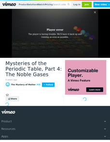 Matter matters. A series of five videos explores the mysteries of the Periodic Table. Viewers learn about the properties of atoms and subatomic particles and how they relate to the arrangement of the Periodic Table. Another video examines how the discovery of inert noble gases forced scientists to adjust their model. The final mystery of why a heavier element comes before a lighter one is solved in the last video of the series.