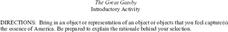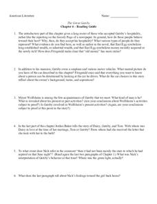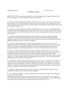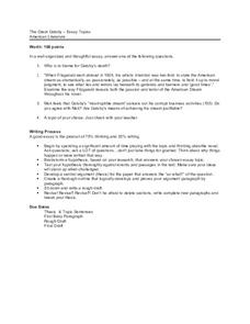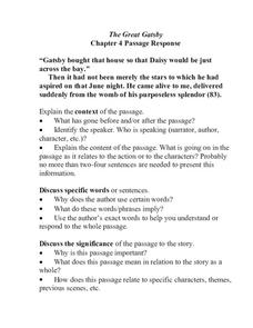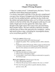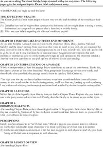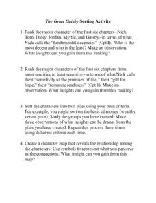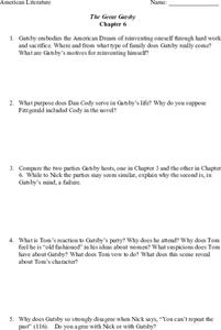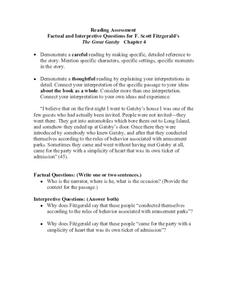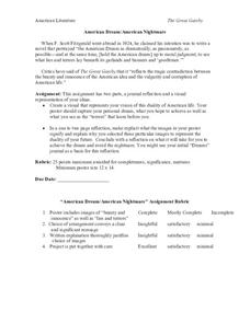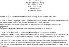 F. Scott Fitzgerald's intent in The Great Gatsby, was "to state the American dream as dramatically, as passionately, as possible – and at the same time, to hold it up to moral judgment, to see what lies and terrors lay beneath its garlands and banners and ‘good times’.” The materials in this collection are designed to encourage readers of The Great Gatsby to explore and demonstrate their understanding of the many layers of F. Scott Fitzgerald's classic American novel.