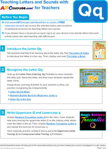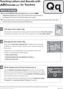 Teach the letter Qq with ABCmouse.com! In this collection, you will find: • A color version of the instructional routine for the letter Qq with direct hyperlinks to ABCmouse activities • A printer-friendly black and white version of the instructional routine for the letter Qq • Letter Pairs Coloring Printable: Qq • Uppercase Letter Tracing Printable: Q • Lowercase Letter Tracing Printable: q • The ABCmouse Letter Q Music Video ABCmouse makes teaching the alphabet easier than ever with free songs, books, puzzles, games, and Printables. Visit www.ABCmouse.com/teachers to create a FREE classroom account and access the activities included in the instructional routine, plus hundreds of additional resources for teaching letters and sounds. If you already have a classroom account, log in on your device to be linked directly to each activity below and start teaching the letter Qq with ABCmouse!