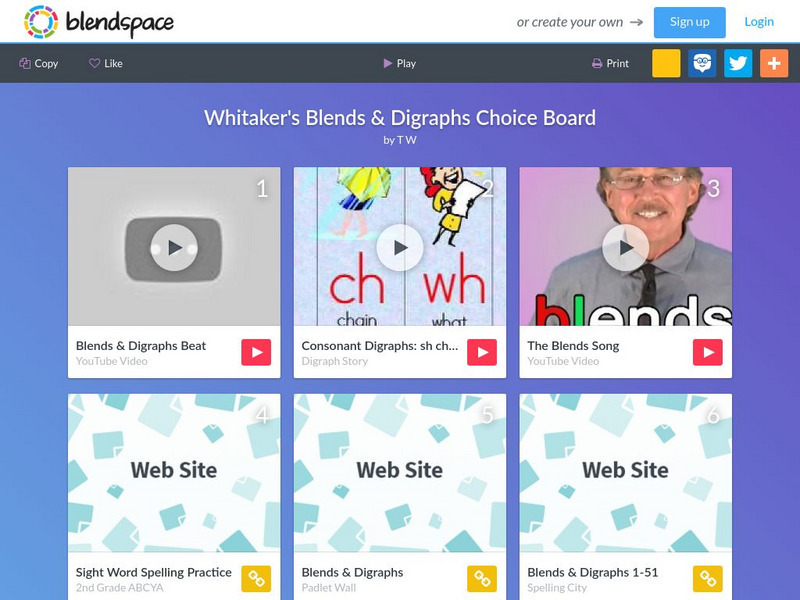 Blendspace: Whitaker's Blends & Digraphs Choice Board