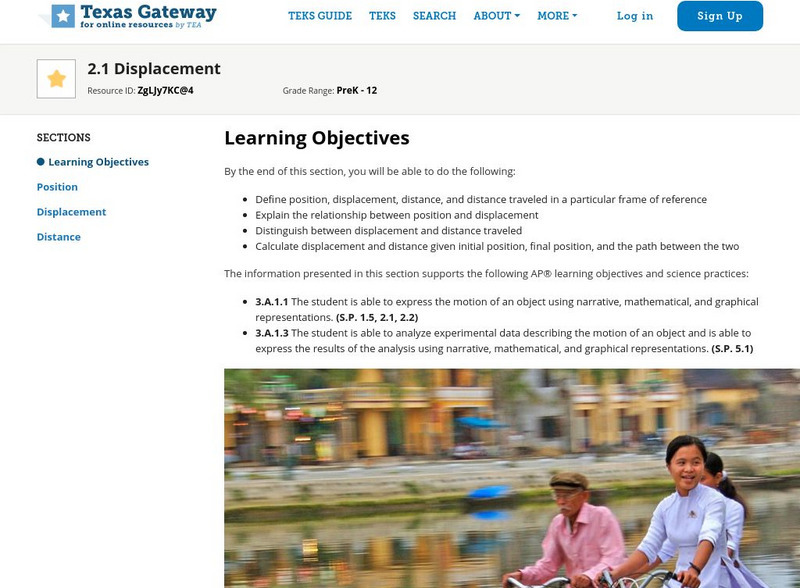 By the end of this section, you will be able to do the following: Define position, displacement, distance, and distance traveled in a particular frame of reference; Explain the relationship between position and displacement; Distinguish...