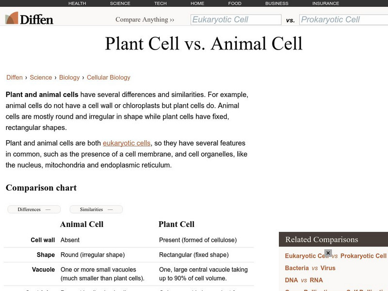Find out about the basics of plant and animal cells with this comparison chart. Then read the article, study the diagrams, and watch the video to dig a little deeper into the topic.
