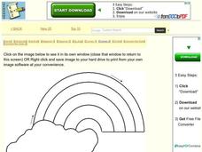 In this pre-printing practice worksheet, students trace a set of curved lines on a picture of a rainbow and on lines at the bottom of the page, then color. Page has multiple links to additional resources.