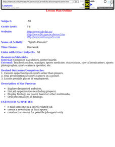 Learners research various sports careers, locate possible places of employment, and give an oral presentation of their findings.