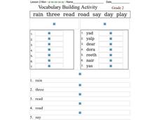 In this using vocabulary words instructional activity, 1st graders review the short i words is, did, him, his, and the word one by writing them from dictation, unscrambling their letters, and identifying misspelled words. Students answer...