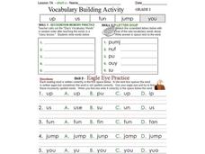 In this vocabulary building worksheet, 1st graders write a list of 5 long a words as the teacher dictates them. They unscramble the words and complete an "Eagle Eye" activity. They examine a vocabulary word and a list of words that...