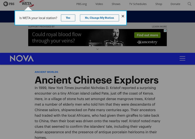 This video segment adapted from 1421: The Year the Chinese Discovered America? introduces the theory that the Chinese discovered America prior to Columbus.