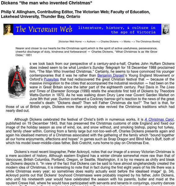 Victorian Web: Dickens "The Man Who Invented Christmas"