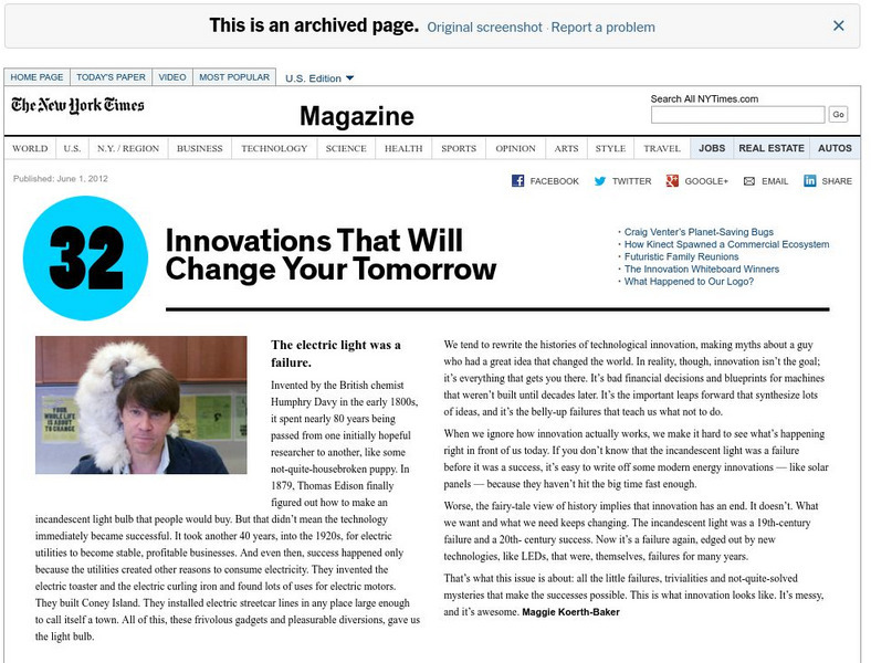 New York Times: 32 Innovations That Will Change Your Tomorrow