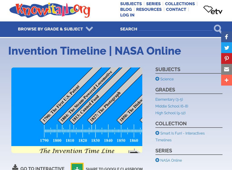 Did you ever wonder who invented something, and when it was invented? Go to this interactive timeline that highlights inventors/inventions from 1750-1990. Click on the topic to read a brief paragraph about that invention.