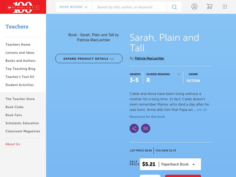 Check out this site featuring the book Sarah, Plain and Tall by Patricia MacLachlan. You will find a description, an extension activity, a vocabulary builder, and a booklist.