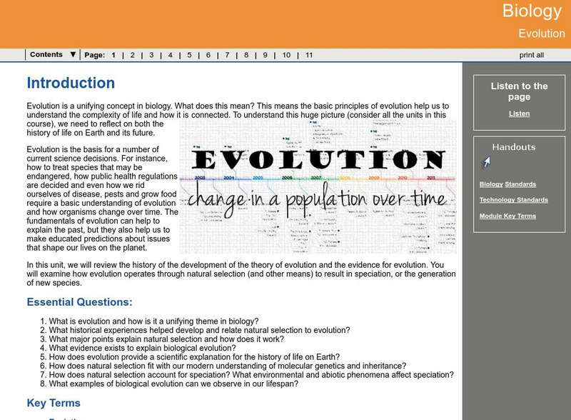 Overview of the basic concepts behind evolution, such as gene variation and adaptations.[Free Registration/Login may be required to access all resource tools.]