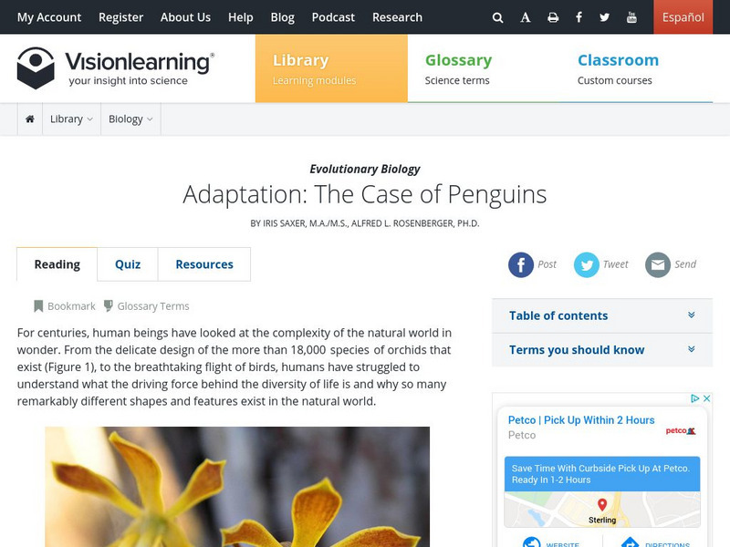 Visionlearning: Biology: Adaptation: The Case of Penguins
