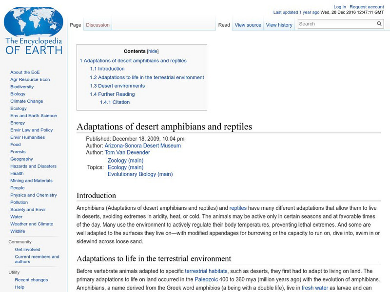 Encyclopedia of Earth: Adaptations of Desert Amphibians and Reptiles
