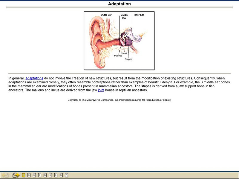 These pages are part of a site called Evolution that accompany a textbook by the same name. Mark Ridley is the author. There is a large amount of information available about adaptations and their role in evolution.
