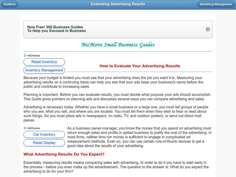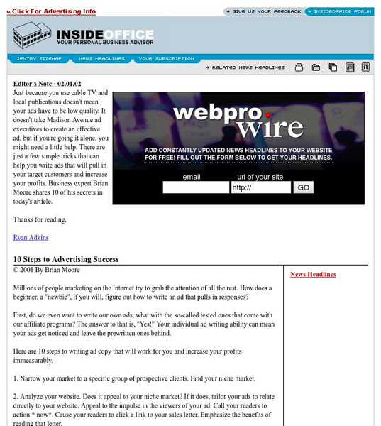 This site details 10 steps, as identified by Brian Moore, to finding success with your advertising campaign.
