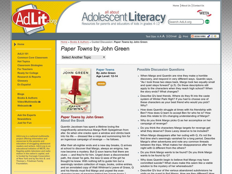 Ad lit.org: Reading Discussion Guide: Paper Towns by John Green