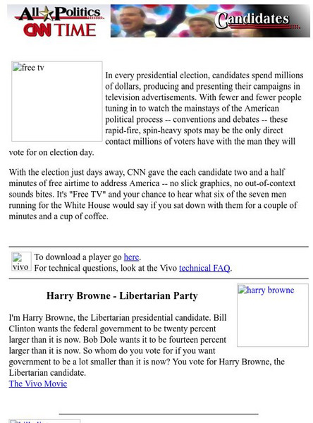 Although the advertisement reads that the "free" two and a half minutes given to each candidate in the 1996 Presidential election will be soundbite free, in actuality the two and a half minute speeches are lengthy sound bites.