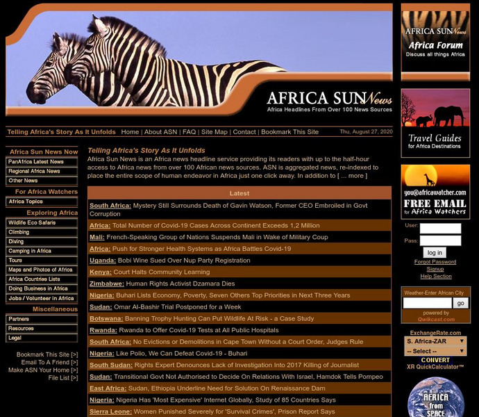 This is an excellent resource for historical information as well as breaking news about African countries. It monitors conflicts with up-to-date news with news from more than 100 African news sources. The site also offers an "Exploring...