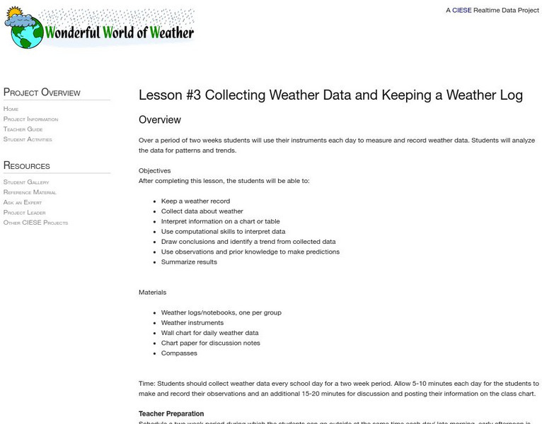 Ciese Real Time Data Projects:collecting Weather Data and Keeping a Weather Log