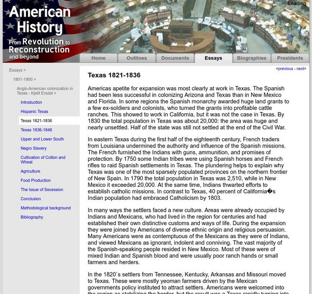 American History: Essays: Anglo Amer. Colonization in Texas: Texas 1821 1836