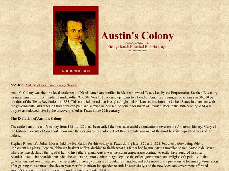Often called "The Father of Texas", Stephen Austin settled the first American colony in Mexican controlled Texas and fought for Texas independence. Hyperlinks to additional information.