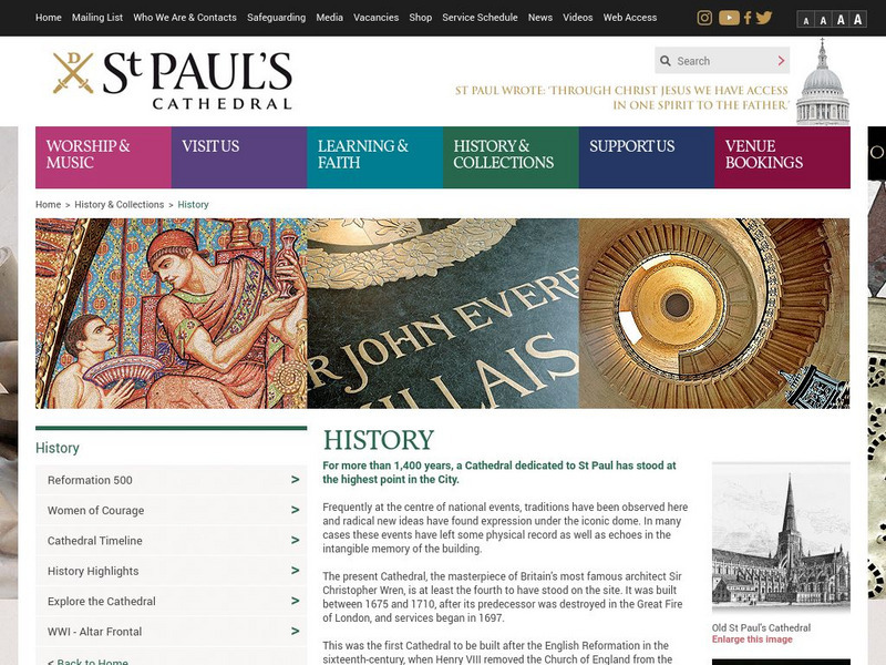 The online home of Saint Paul's Cathedral has information on the building's architecture and history. Includes architectural diagrams of the cathedral's floor plan, its dome, and crypt; a timeline; interior and exterior photographs; and...