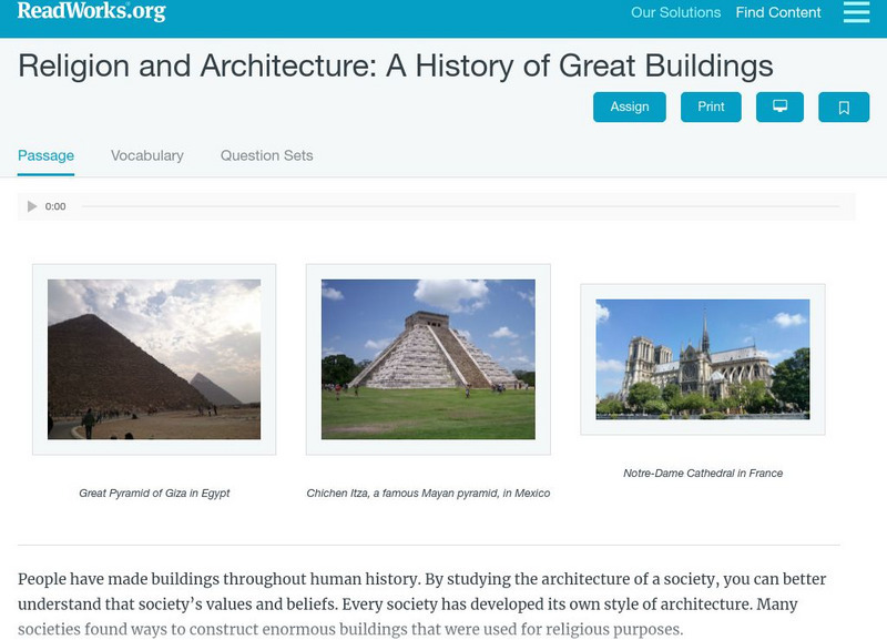 [Free Registration/Login Required] An informational text about important architecture throughout history. A question sheet is available to help students build skills in reading comprehension.