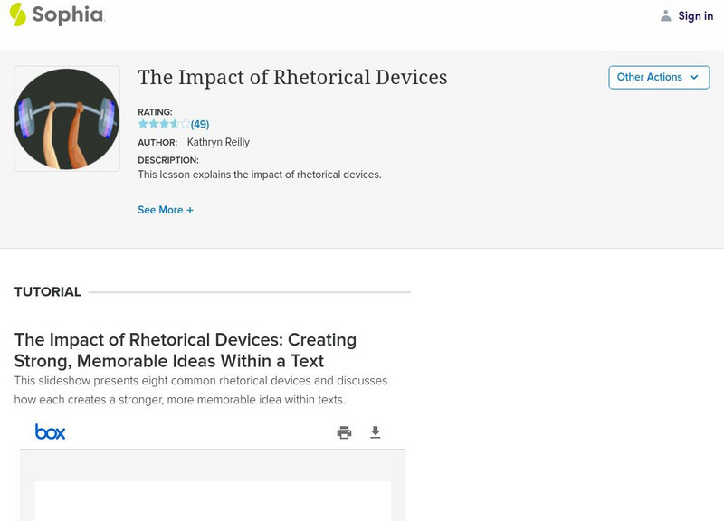 This slideshow focuses on the impact of rhetorical devices and how they impact text. It explains eight common rhetorical devices: anaphora, asyndeton, chiasmus, direct address, hyperbaton, parallelism, polysyndeton, and rhetorical...