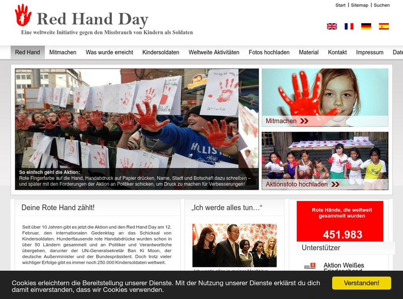 The Red Hand Day campaign works to raise awareness of the abuse of children as child soldiers, and efforts to stop this practice.
