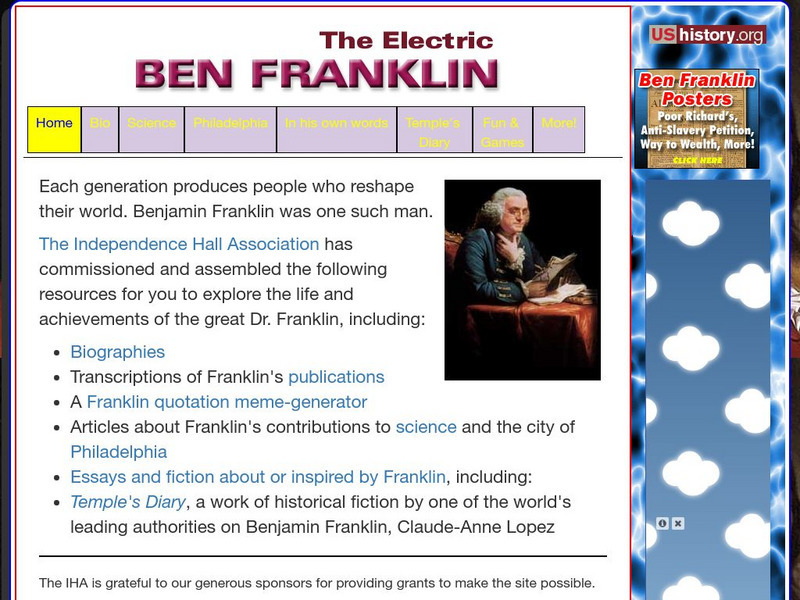 This student-created project site looks at the life of Benjamin Franklin and his experiments with lightning. Includes a timeline, a glossary, a printable quiz, and many illustrations.