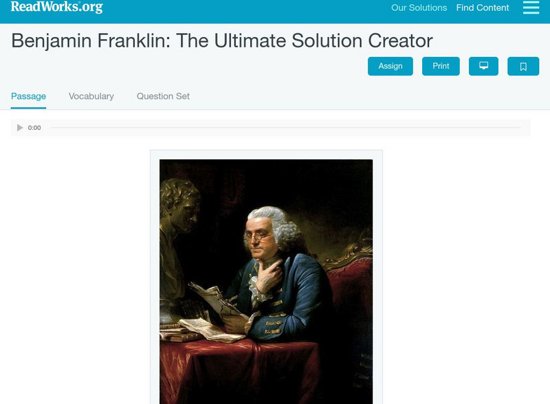 Read Works: Benjamin Franklin: The Ultimate Solution Creator