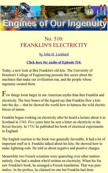 University of Houston: Engines of Our Ingenuity: Franklin's Electricity