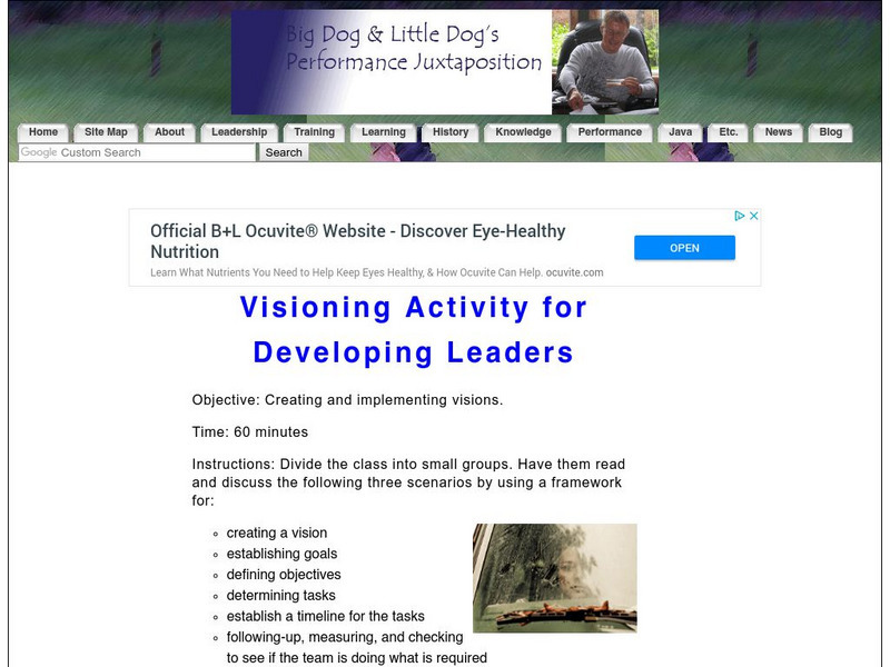 Lesson plan, complete with scenario, for practice in writing a vision statement.
