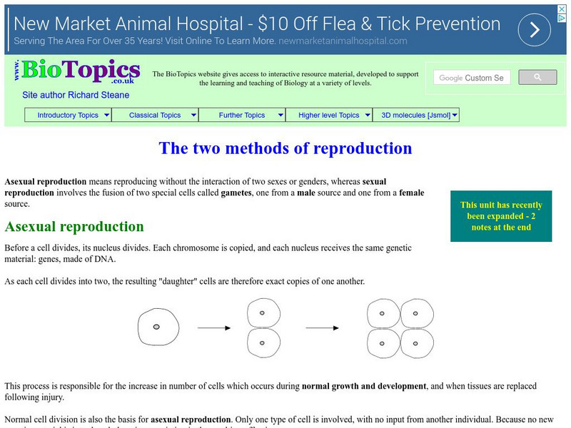 This brief tutorial illustrates the difference between asexual and sexual reproduction in organisms. Check your understanding with the mouse-over review questions.