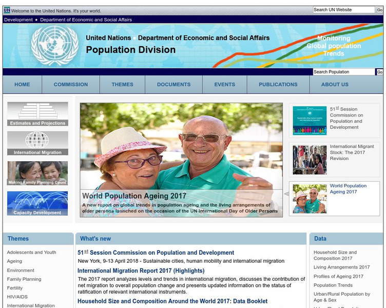 United Nations information on population issues of the world. Examples include long-range population projections, international migration, and population charts and graphs.