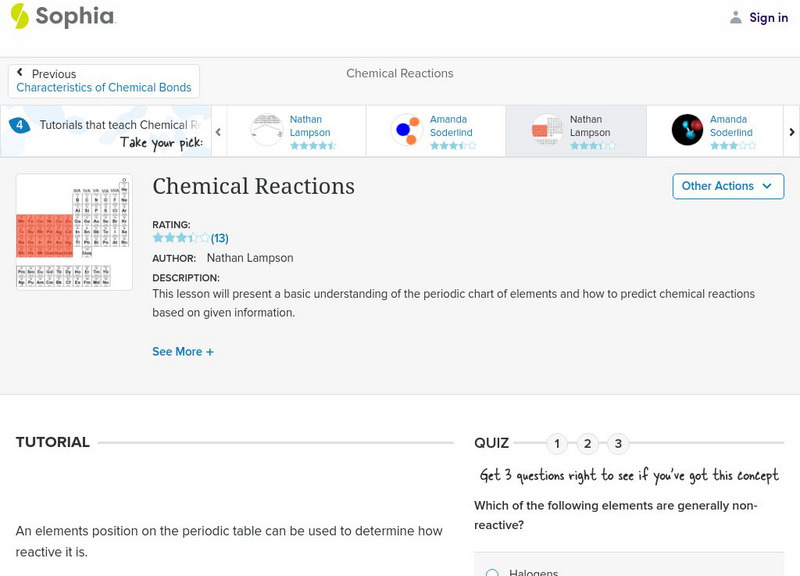 This lesson will present a basic understanding of the periodic chart of elements and how to predict chemical reactions based on given information. It is 4 of 9 in the series titled "Chemical Reactions."