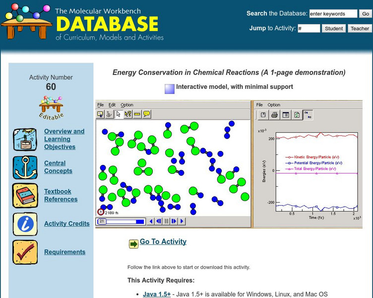 The Molecular Workbench Database: Energy Conservation in Chemical Reactions