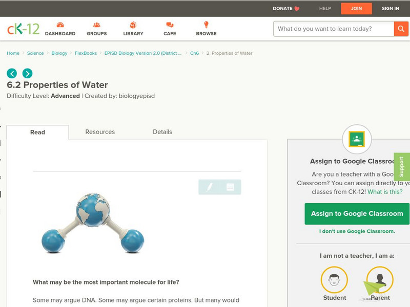 Ck 12: Properties of Water
