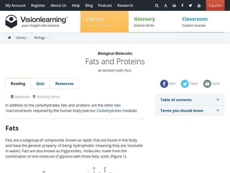 Visionlearning: Biological Molecules: Fats and Proteins