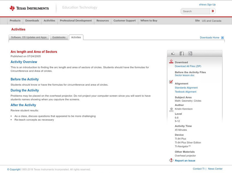 [Free Registration/Login may be required to access all resource tools.] In this lesson students calculate the area of circles and the area of sectors of circles by using given information and formulas. Students examine guided notes,...