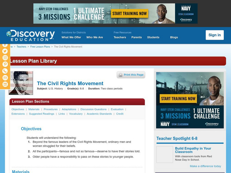 Comprehensive resource focusing on the men and women who fought for civil rights. Extensive links to discussion questions, related information, timeline, and activities.