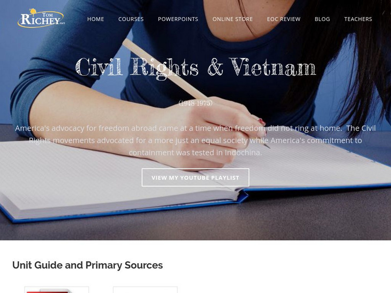 A unit guide and primary sources supply to assist with learning about the Civil Rights Movement in America as well as the activities taking place in Vietnam. Why was America fighting for civil rights across the seas while struggling with...