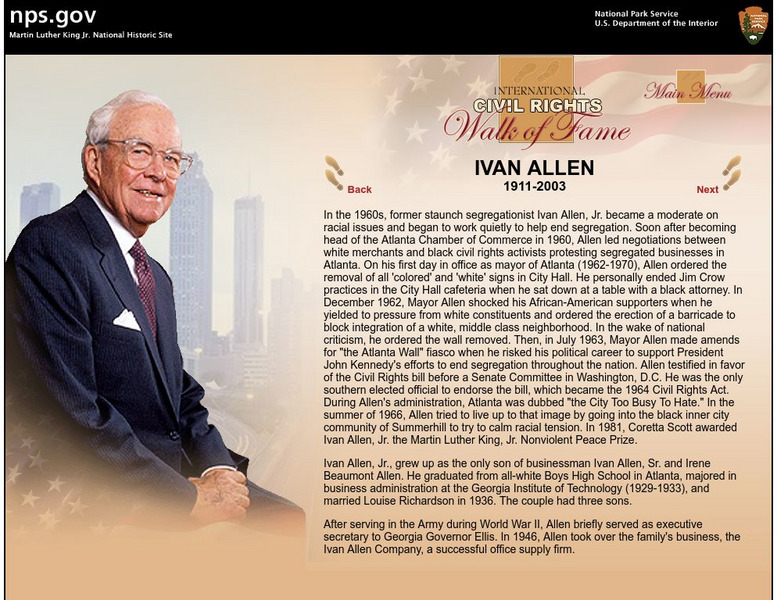 National Park Service: International Civil Rights Walk of Fame: Ivan Allen