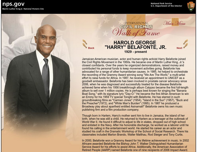National Park Service: International Civil Rights Walk of Fame: Harold Belafonte