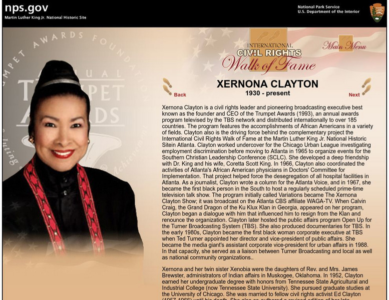 National Park Service: International Civil Rights Walk of Fame: Xernona Clayton