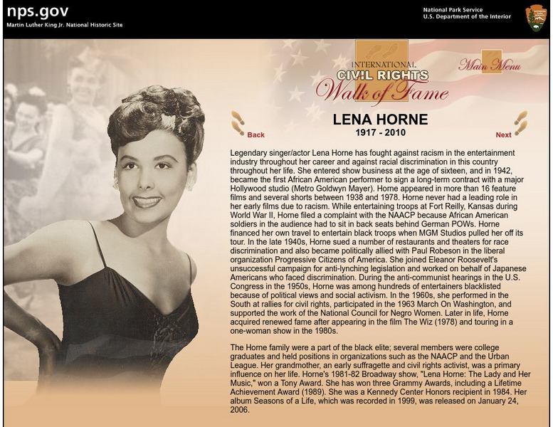 National Park Service: International Civil Rights Walk of Fame: Lena Horne